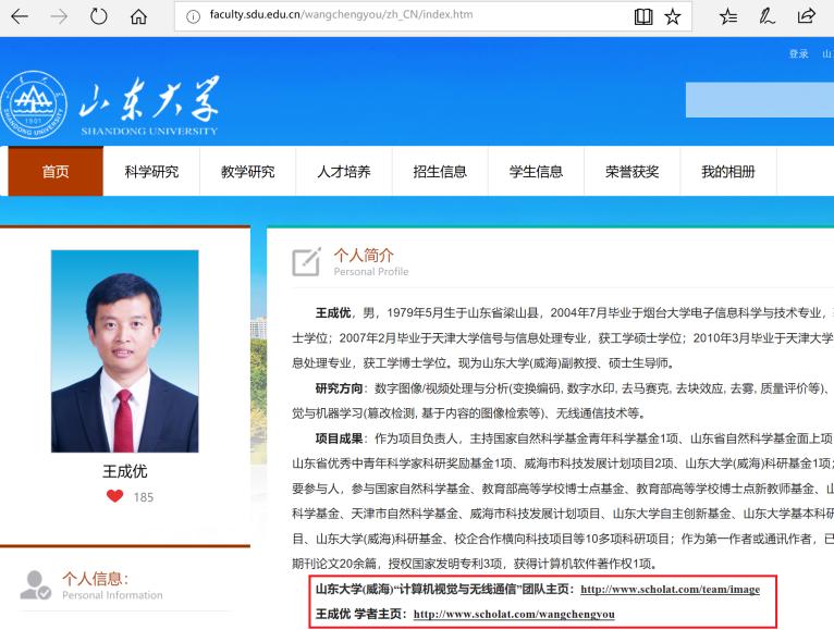 山東大學(xué)教師主頁(yè):http://faculty.sdu.edu.cn/