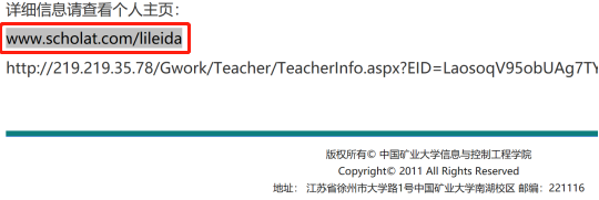 2、學(xué)院主頁(yè)教授個(gè)人介紹信息中填寫(xiě)學(xué)者網(wǎng)鏈接http://siee.cumt.edu.cn/db/49/c242a514889/page.htm