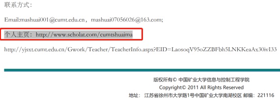 1、學(xué)院網(wǎng)站教師個(gè)人信息http://siee.cumt.edu.cn/c7/53/c243a444243/page.htm