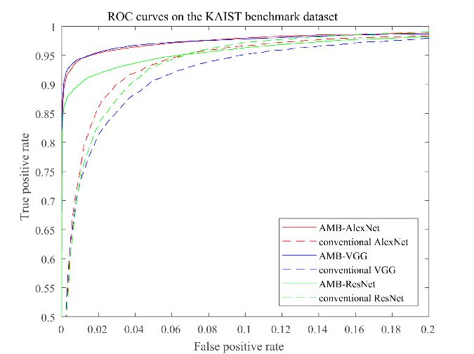 (c)在KAIST 數(shù)據(jù)集上獲得的ROC 曲線對(duì)比