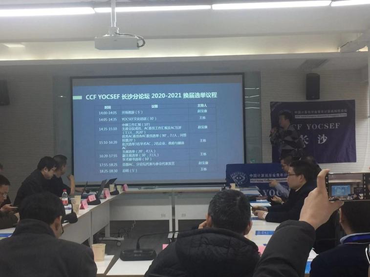 2020年1月4日下午,CCF YOCSEF長沙2019-2020年度第9次AC會(huì)議暨2020-2021年度換屆選舉會(huì)議在星沙區(qū)塊鏈產(chǎn)業(yè)園五樓會(huì)議室隆重舉行。CCF YOCSEF總部AC委員王棟、CCF YOCSEF天津主席王鑫、CCF YOCSEF桂林主席張燦龍、CCF YOCSEF長沙主席趙寶康、CCF YOCSEF成都AC楊濤、CCF YOCSEF鄭州AC劉福東和王峰、CCF YOCSEF長沙的部分AC委員鄺祝芳、陽旺、張錦、付紹靜、楊超、肖晟、許瑩、滿君豐、李小龍、張建明、周棟、劉功杰、陳海兵、曹步清以及參與換屆選舉活動(dòng)的候選AC出席了本次活動(dòng)。