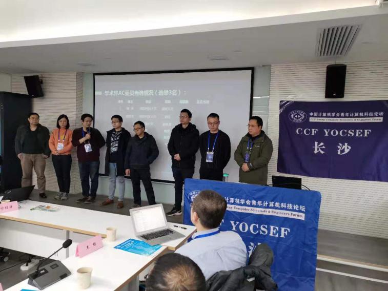 緊接著進(jìn)入新一屆的AC委員選舉階段。來自學(xué)術(shù)界的張世文(湖南科技大學(xué))、張士庚(中南大學(xué))、王勇(中南大學(xué))、何世文(中南大學(xué))、喻波(國防科技大學(xué))、王曉亮(湖南科技大學(xué)),歐陽雪(國防科技大學(xué)),彭成(湖南工業(yè)大學(xué)),以及來自企業(yè)界的紀(jì)軍剛(深圳市證通電子股份有限公司)、楊征(湖南天河國云科技有限公司)、魯彬(深圳市證通電子股份有限公司)、徐文韜(長沙華砼科技有限公司)共12位候選人參加競選。每位參選人進(jìn)行2分鐘的競選演說后,由推薦人進(jìn)行20秒的介紹,候選人就現(xiàn)場其他委員的提問進(jìn)行了答辯。經(jīng)過無記名投票,張世文、王勇、彭成3位候選人當(dāng)選為新一屆CCF YOCSEF長沙(2020-2021)AC委員,紀(jì)軍剛、楊征、徐文韜當(dāng)選非學(xué)術(shù)委員。