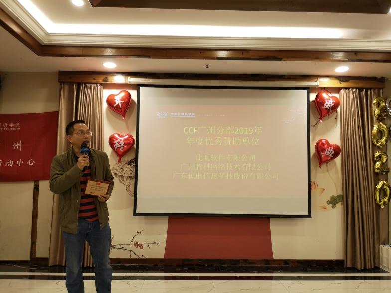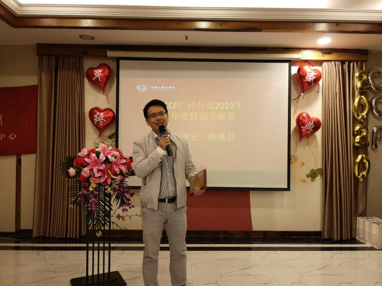 余愛(ài)民為CCF廣州分部頒發(fā)CCF 2019年度全國(guó)優(yōu)秀分部獎(jiǎng)