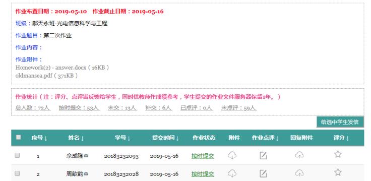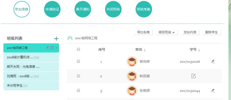 教學團隊成員自主建立教學班,實現(xiàn)學生的分類管理(圖3),學生作業(yè)與學習打卡過程通過教學平臺自動實現(xiàn),學校的學生大多已經擁有學者網(wǎng)帳號,一次注冊,多門功課隨時加入。