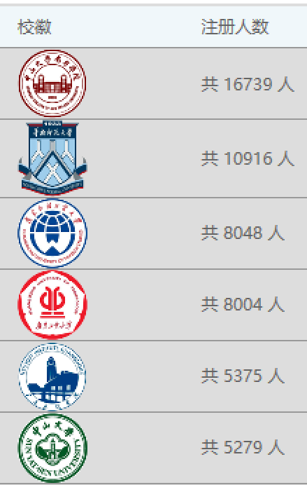 截止2020年3月6日,注冊(cè)數(shù)TOP6高校