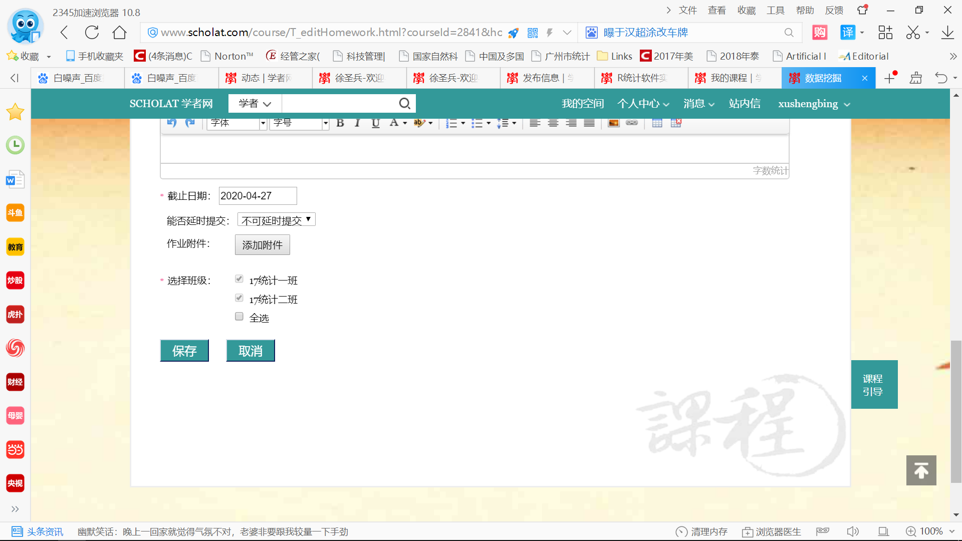 2、設(shè)置提交作業(yè)截止時間為講課時間并設(shè)置為不可延時提交選項