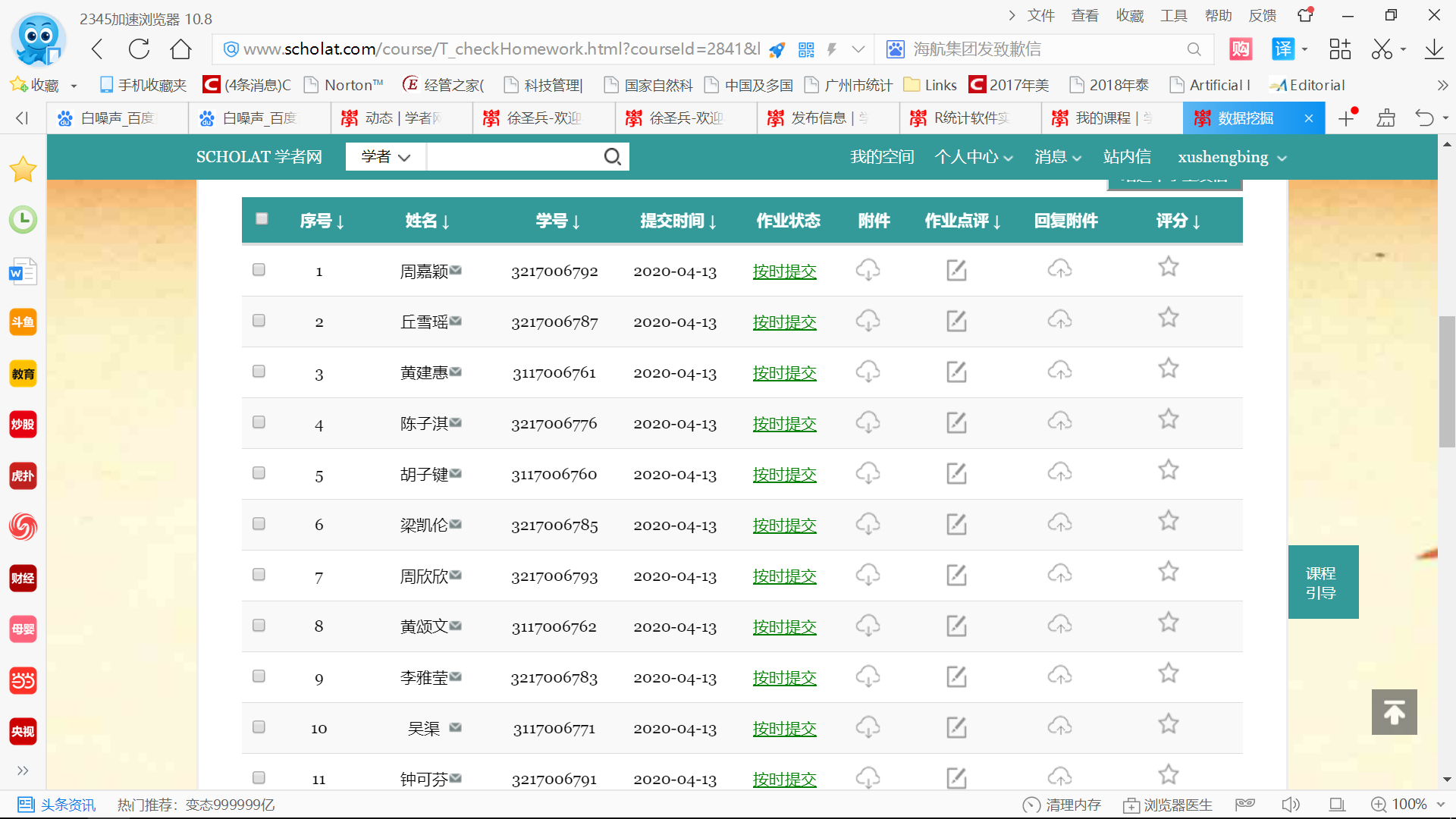 5、根據(jù)上述提交信息生成考勤表,把沒有提交作業(yè)的同學(xué)考勤信息更新為非出勤狀態(tài)即可。