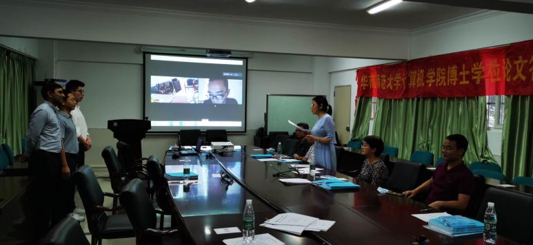 2020年5月27日,華南師范大學(xué)計(jì)算機(jī)學(xué)院舉行了博士論文答辯。答辯采用現(xiàn)場(chǎng)與網(wǎng)絡(luò)結(jié)合方式,答辯評(píng)委在計(jì)算機(jī)學(xué)院會(huì)議現(xiàn)場(chǎng)評(píng)議,3名返校博士生在現(xiàn)場(chǎng)匯報(bào)和答辯,1名博士生通過(guò)騰訊會(huì)議網(wǎng)絡(luò)匯報(bào)和答辯。部分返校博士生參加的旁聽。
