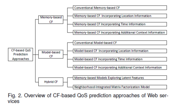 許多方法使用傳統(tǒng)的基于內(nèi)存的CF來進行QoS預測。它們只使用用戶-服務QoS矩陣,并試圖從以下四個方面來提高預測性能: