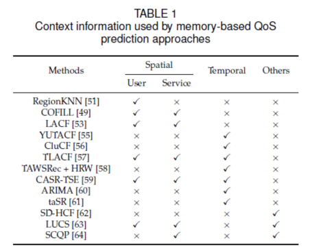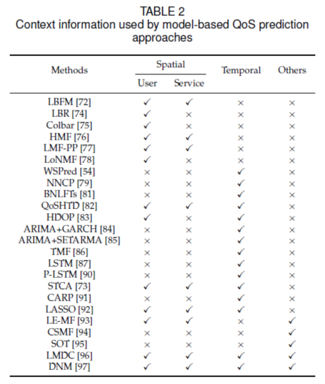 Table 2總結了基于模型的QoS預測方法使用的上下文信息。