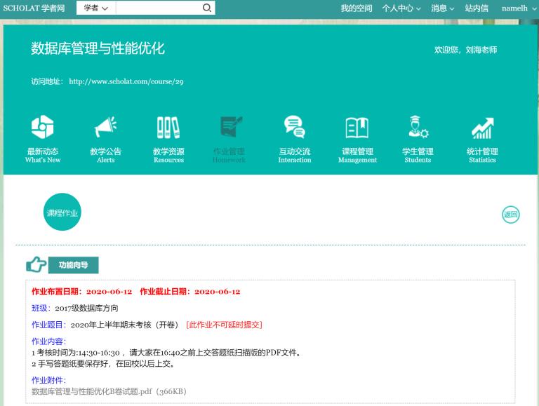 《數(shù)據(jù)庫管理與性能優(yōu)化》是計算機科學(xué)與技術(shù)專業(yè)數(shù)據(jù)科學(xué)方向的限選課程,疫情期間停課不停學(xué),通過12周的理論教學(xué)與實踐教學(xué),已于2020年6月12日完成期末考核。