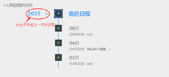 點擊“更多”下的“我的日程”,會以時間軸的方式顯示您所添加過的事件。