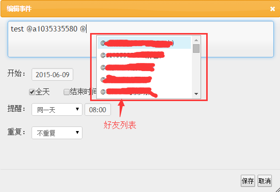 點擊“更多”下的“好友推送提醒”,可以看到您的好友推送給您的事件提醒。在新建事件時,可以使用“@”符號來推送事件給其他好友。