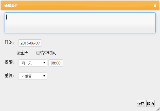 在日、周及月視圖中點擊需要添加提醒事件的時間段,會出現(xiàn)一個“加號”,點擊“加號”,彈出添加事件提醒框,然后編輯事件,點擊保存即可。