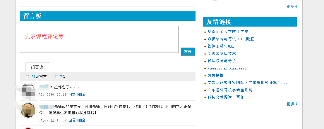 在首頁提供互動交流功能,方便站內(nèi)的課程和非課程成員交流。在這里可以暢所欲言,發(fā)表評論和意見等。教師用戶可自行選擇是否開放該功能。