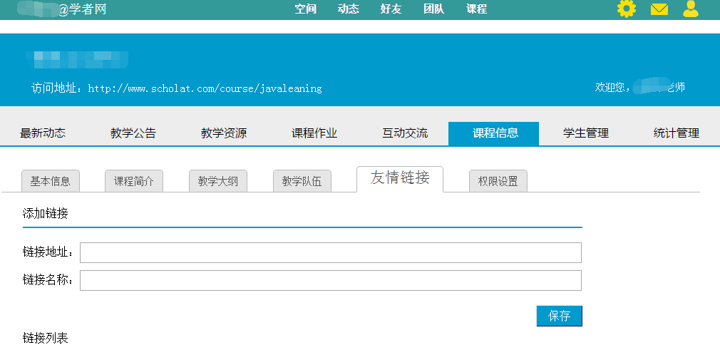 友情連接,可將教學網站鏈接共享,提供添加鏈接和刪除鏈接的操作。如圖8.3所示: