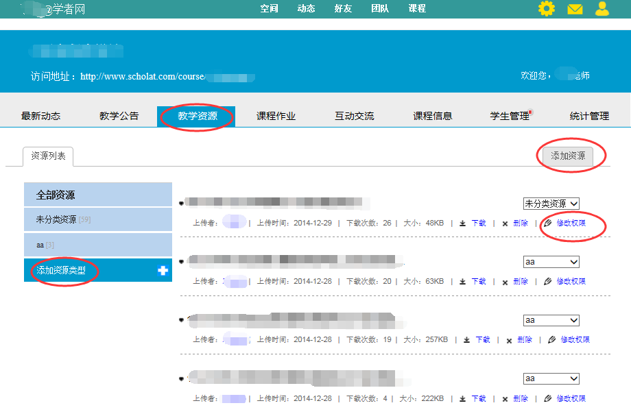 “所有人”— 和公告權限類似,教師上傳資源后,所有用戶均可在該課程首頁查看到