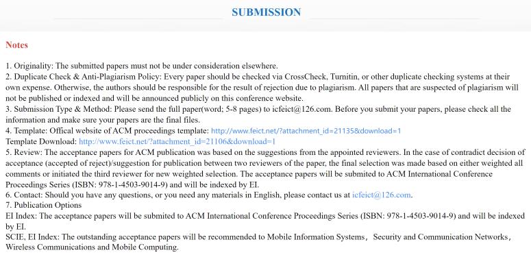 ICFEICT 2021將于5月21-23日在湖南長(zhǎng)沙召開(kāi),歡迎大家投稿Workshop 17: Optical Wireless Communications,投稿截止日期4月30日。請(qǐng)根據(jù)大會(huì)提供的模板準(zhǔn)備稿件(建議5-7頁(yè),超過(guò)7頁(yè)將收取Extra Page Charge),請(qǐng)將投稿郵件的主題命名為“paper title_workshop title”,然后將稿件發(fā)送到icfeict@126.com。