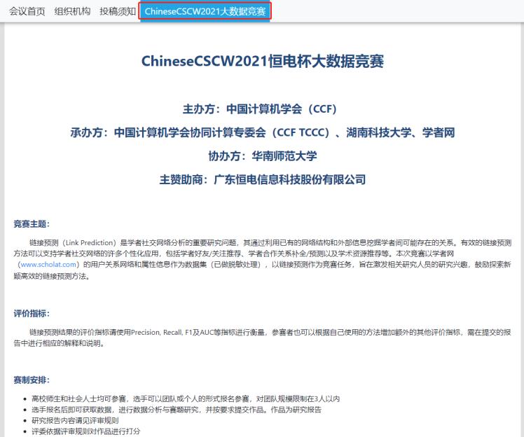 更多競(jìng)賽信息及報(bào)名、數(shù)據(jù)集下載鏈接詳見會(huì)議網(wǎng)站:https://conf.scholat.com/ccscw/2021