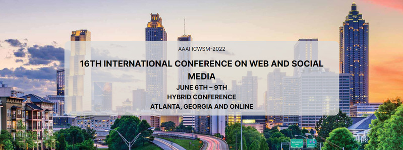 ICWSM-2022 will be held from June 6th – 9th in a hybrid format, both in-person in Atlanta, Georgia and online.