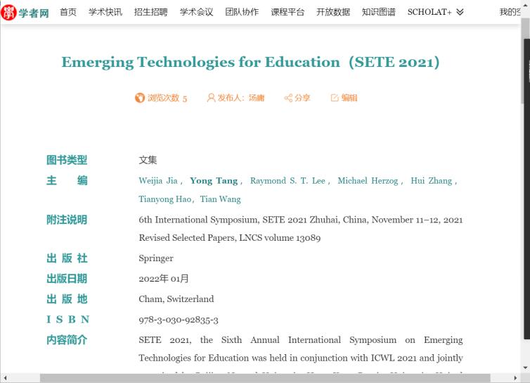 “著作”是學(xué)術(shù)信息的主要組成部分,近期SCHOLAT完成了“學(xué)術(shù)空間-著作信息”數(shù)據(jù)結(jié)構(gòu)優(yōu)化升級,目標(biāo)是能夠方便全面地錄入著作相關(guān)信息,并實現(xiàn)數(shù)據(jù)屬性”實體化“,為著作信息管理與智能推薦提供基礎(chǔ),為學(xué)者網(wǎng)用戶提供更有效的“著作”宣傳推廣平臺。本次主要改進(jìn)如下: