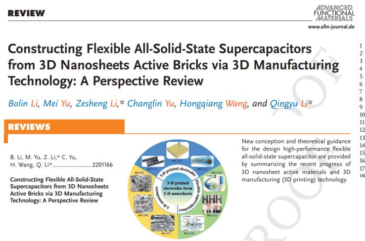 論文信息:Constructing Flexible All-Solid-State Supercapacitors from 3D Nanosheets Active Bricks via 3D Manufacturing Technology: A Perspective Review, Adv. Funct. Mater. 2022, 2201166.