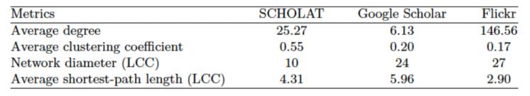 表1: 基于圖指標(biāo)的比較(其中LCC指的是對(duì)應(yīng)社交圖的最大連通分支)
