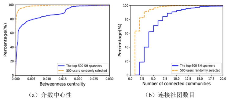圖2: 基于介數(shù)中心性和連接社團(tuán)數(shù)目的分布