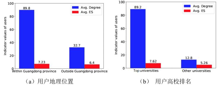 最后,本文進(jìn)一步基于不同用戶組開展了探索,發(fā)現(xiàn)大多數(shù)學(xué)者的研究領(lǐng)域和計(jì)算機(jī)科學(xué)/計(jì)算機(jī)工程相關(guān),而且來自排名靠前的高校和廣東省高校的學(xué)者在整個(gè)網(wǎng)絡(luò)中扮演更重要的角色。