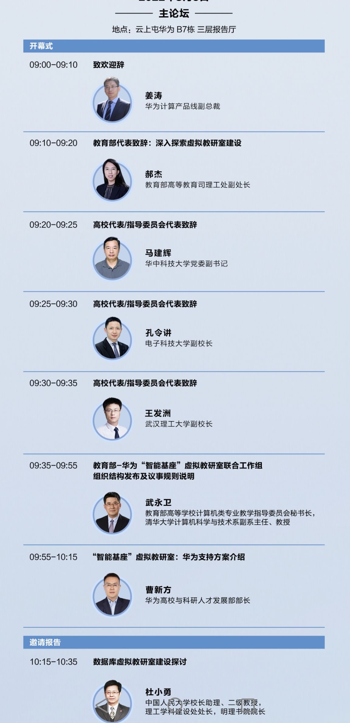 教育部-華為“智能基座”虛擬教研室試點(diǎn)建設(shè)工作研討會于2022年8月3日在貴州貴安舉行。研討會由教育部高等學(xué)校計(jì)算機(jī)類專業(yè)教學(xué)指導(dǎo)委員會主辦,高等教育出版社、華為技術(shù)有限公司承辦。會上宣布成立了“虛擬教研室聯(lián)合工作組",并為指導(dǎo)委員會委員、執(zhí)行委員會委員、秘書處、職能工作組負(fù)責(zé)人頒發(fā)了聘書。
