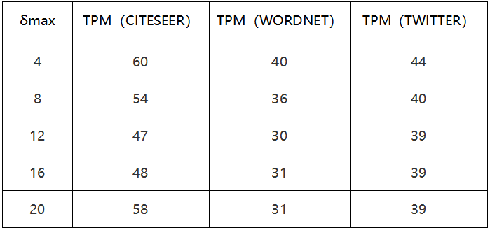 表1. δmax改變對(duì)三個(gè)數(shù)據(jù)集TPM值的影響