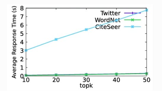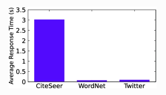 本文對(duì)在線FLAG處理的效率進(jìn)行了詳細(xì)評(píng)估。圖2報(bào)告了默認(rèn)設(shè)置下FLAG的平均響應(yīng)時(shí)間(ART)。對(duì)于CITESEER,ART為3秒左右。對(duì)于TWITTER,本文獲得了簡(jiǎn)短的ART,因?yàn)樽髌返臄?shù)量相對(duì)較少。因此,F(xiàn)LAG的響應(yīng)時(shí)間通常很短。
