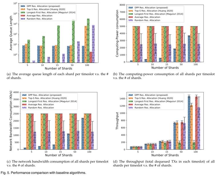 第二組實(shí)驗(yàn)中本文評(píng)估了提出的DPP資源分配算法與現(xiàn)有最好的幾種方法進(jìn)行比較的結(jié)果,這幾種 baseline 方法分別是: