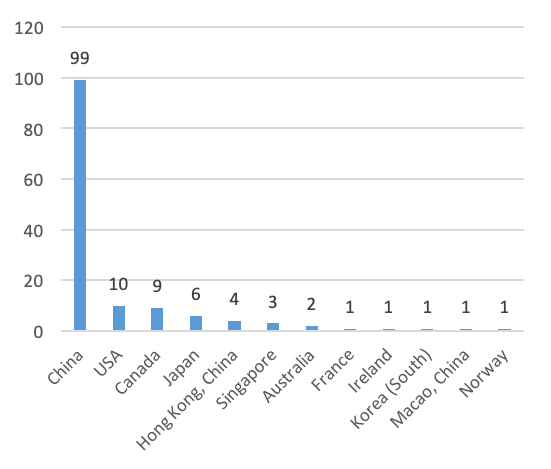 圖2:來自不同地區(qū)的作者的數(shù)量
