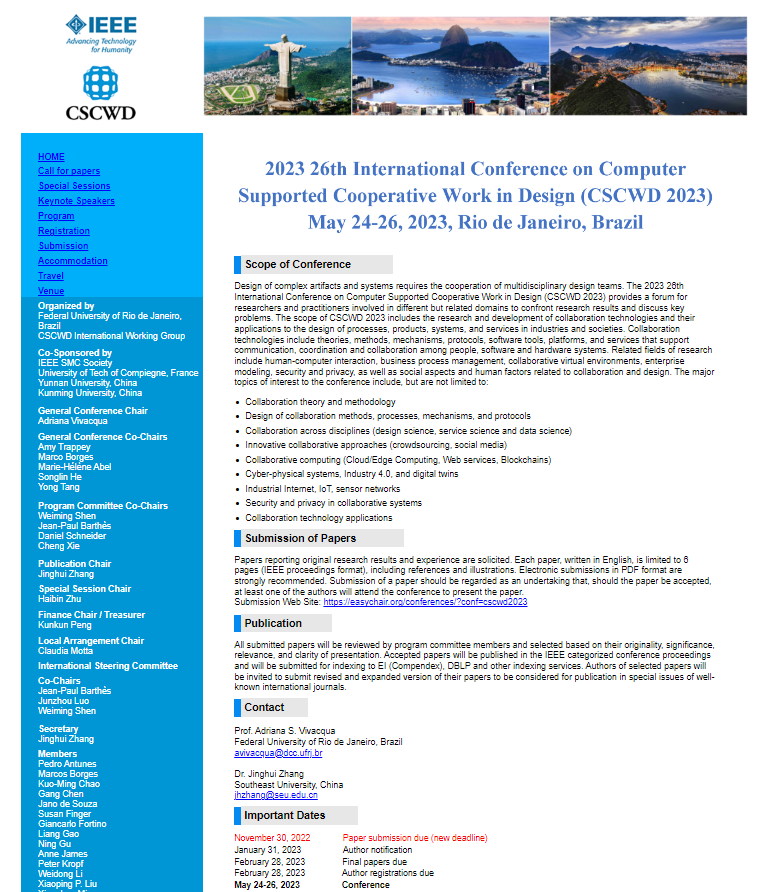 應(yīng)廣大作者要求,CSCWD 2023國(guó)際會(huì)議(CCF推薦C類)投稿截至?xí)r間延期至2022年11月30日,歡迎各位積極投稿!官網(wǎng)地址:http://2023.cscwd.org/