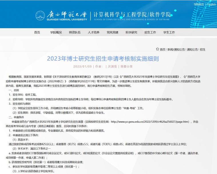 廣西師范大學(xué)計(jì)算機(jī)學(xué)院博士研究生招生全面試行申請(qǐng)考核制,實(shí)施細(xì)則如下: