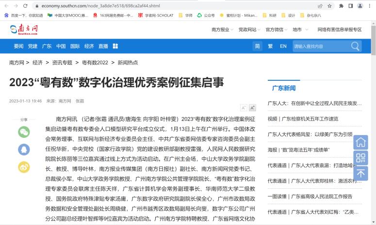 2023年1月13日,2023“粵有數(shù)”數(shù)字化治理案例征集啟動暨“粵有數(shù)”專委會人口模型研究平臺成立上,第二屆“粵有數(shù)”優(yōu)秀案例征集活動正式啟動。