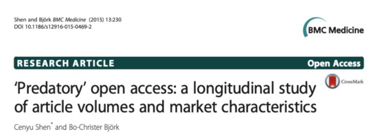 根據(jù) 2015 年的一項研究,掠奪性期刊的發(fā)文量極速增加,從 2010 年的 5.3 萬篇暴漲到 2014 年的 42 萬篇,共發(fā)表在大約 8000 本期刊上。