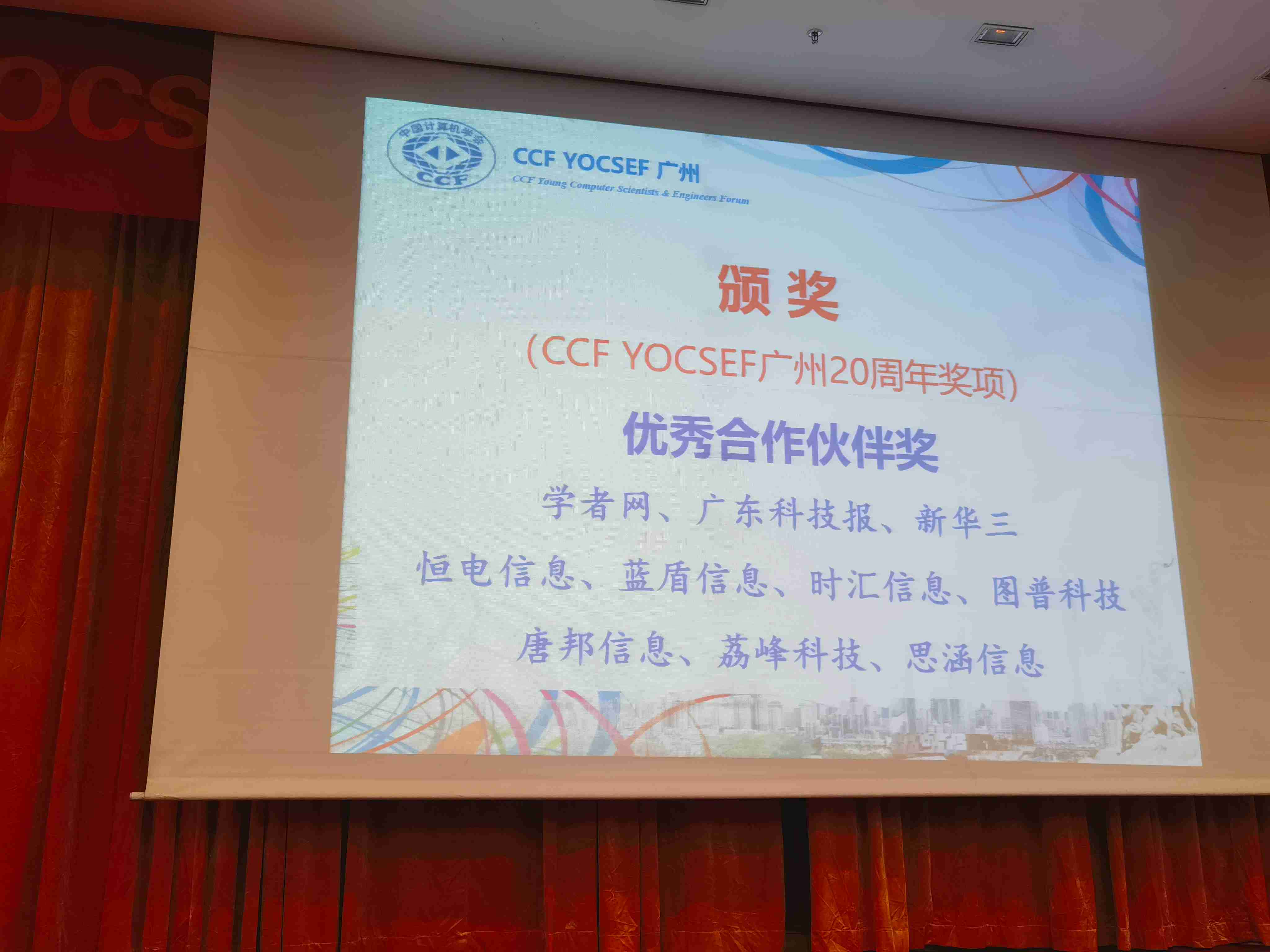 2023年6月3日下午,中國計(jì)算機(jī)學(xué)會(huì)(CCF) YOCSEF廣州20周年慶典在暨南大學(xué)隆重舉行。慶典會(huì)上,CCF秘書長唐衛(wèi)清給湯庸頒發(fā)了”創(chuàng)始功勛獎(jiǎng)”紀(jì)念牌。作為YOCSEF廣州委員交流和官方信息發(fā)布平臺(tái)的支持單位,學(xué)者網(wǎng)獲”優(yōu)秀合作伙伴獎(jiǎng)”。 YOCSEF廣州在2013年十周年慶典會(huì)上正式入駐學(xué)者網(wǎng)團(tuán)隊(duì)平臺(tái),2016年雙方簽署戰(zhàn)略伙伴協(xié)議,指定學(xué)者網(wǎng)為YOCSEF廣州官方媒體發(fā)布平臺(tái),10年來該平臺(tái)為委員們相互學(xué)術(shù)深度了解和交流發(fā)揮了獨(dú)特作用,平臺(tái)發(fā)布信息近500條,平均訪問量超過3000,產(chǎn)生了良好的社會(huì)影響。近期YOCSEF還入駐了學(xué)者網(wǎng)新上線的媒體工具機(jī)構(gòu)號(hào)。