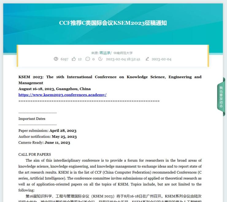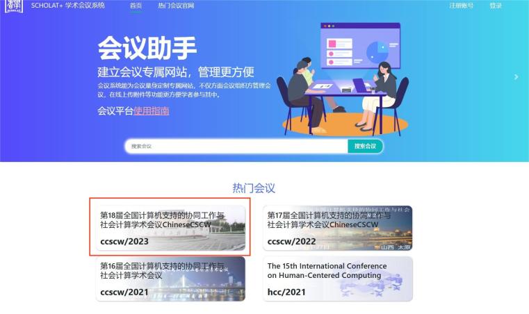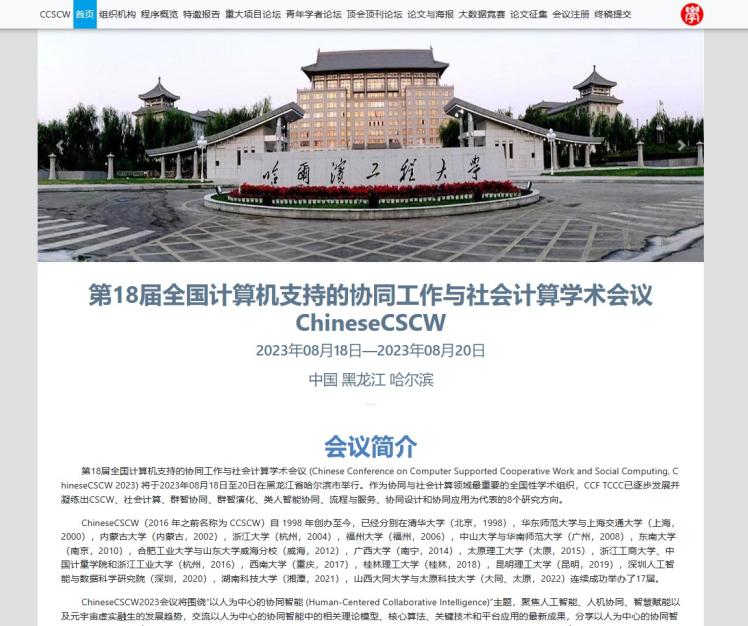 點(diǎn)擊SCHOLAT+學(xué)術(shù)會(huì)議平臺(tái)可以查看到會(huì)議的官網(wǎng)(詳細(xì)了解會(huì)議的征稿要求,會(huì)議時(shí)間,注冊(cè)費(fèi)用等信息)。下面以ccscw2023為例。