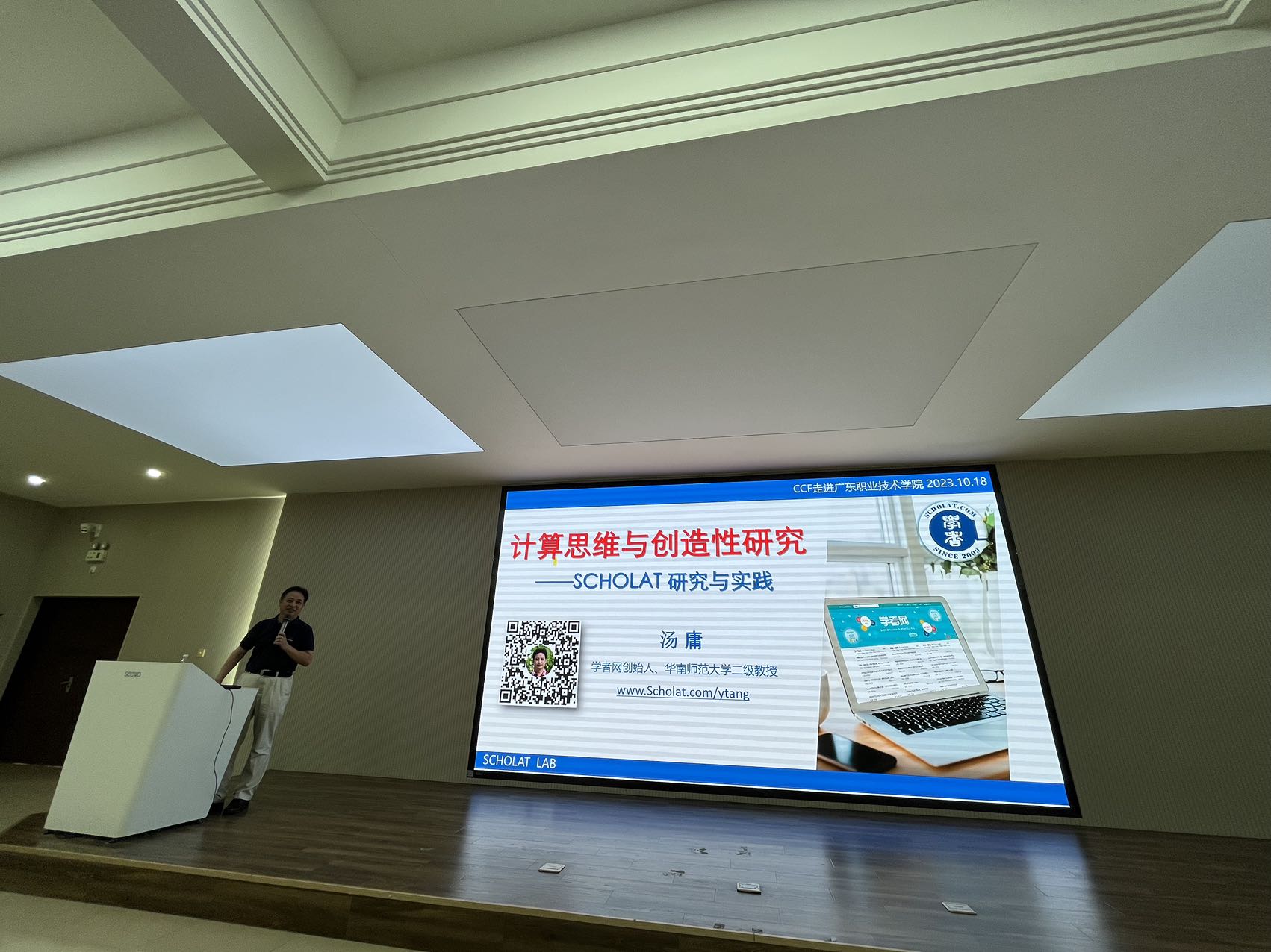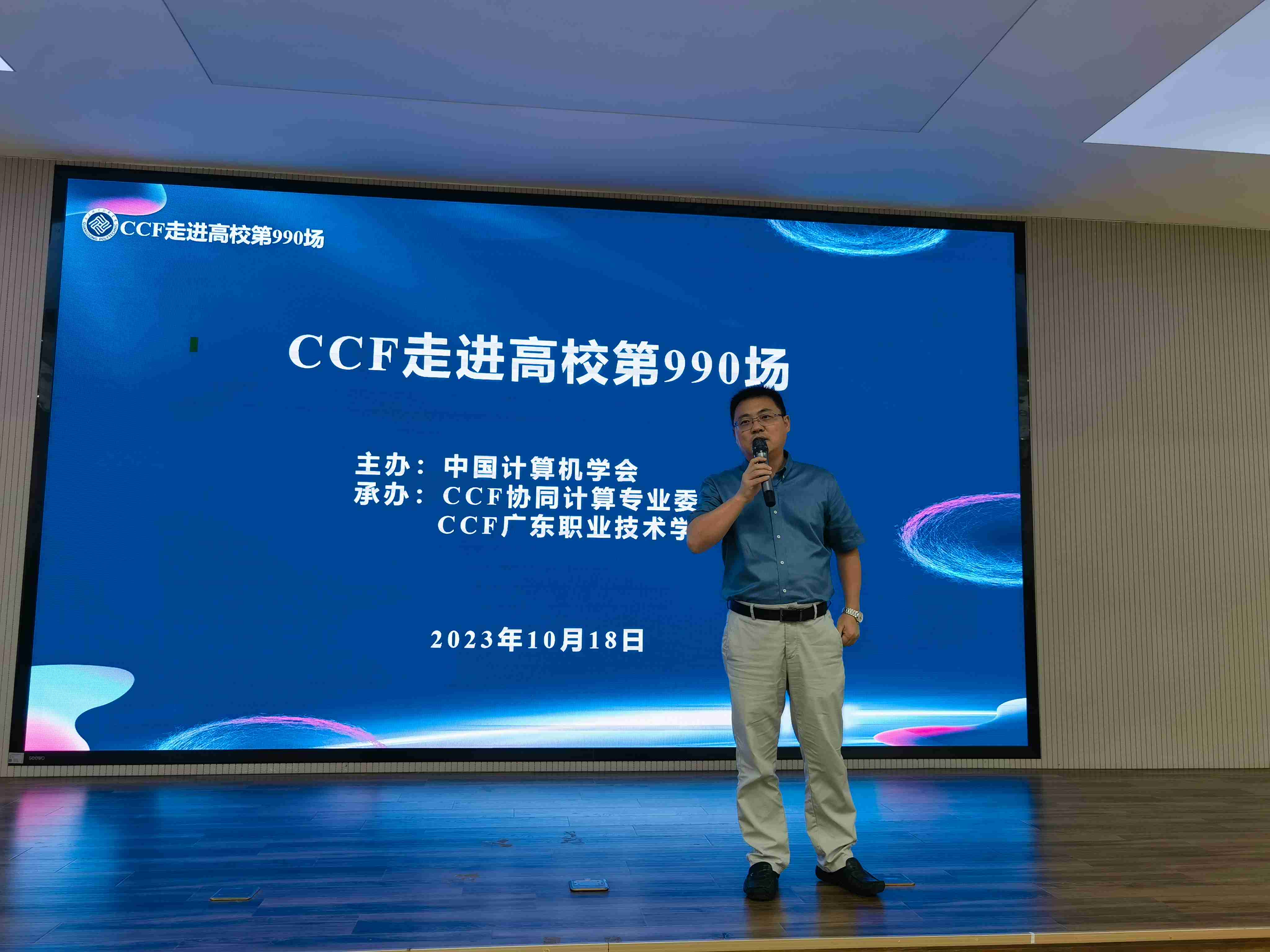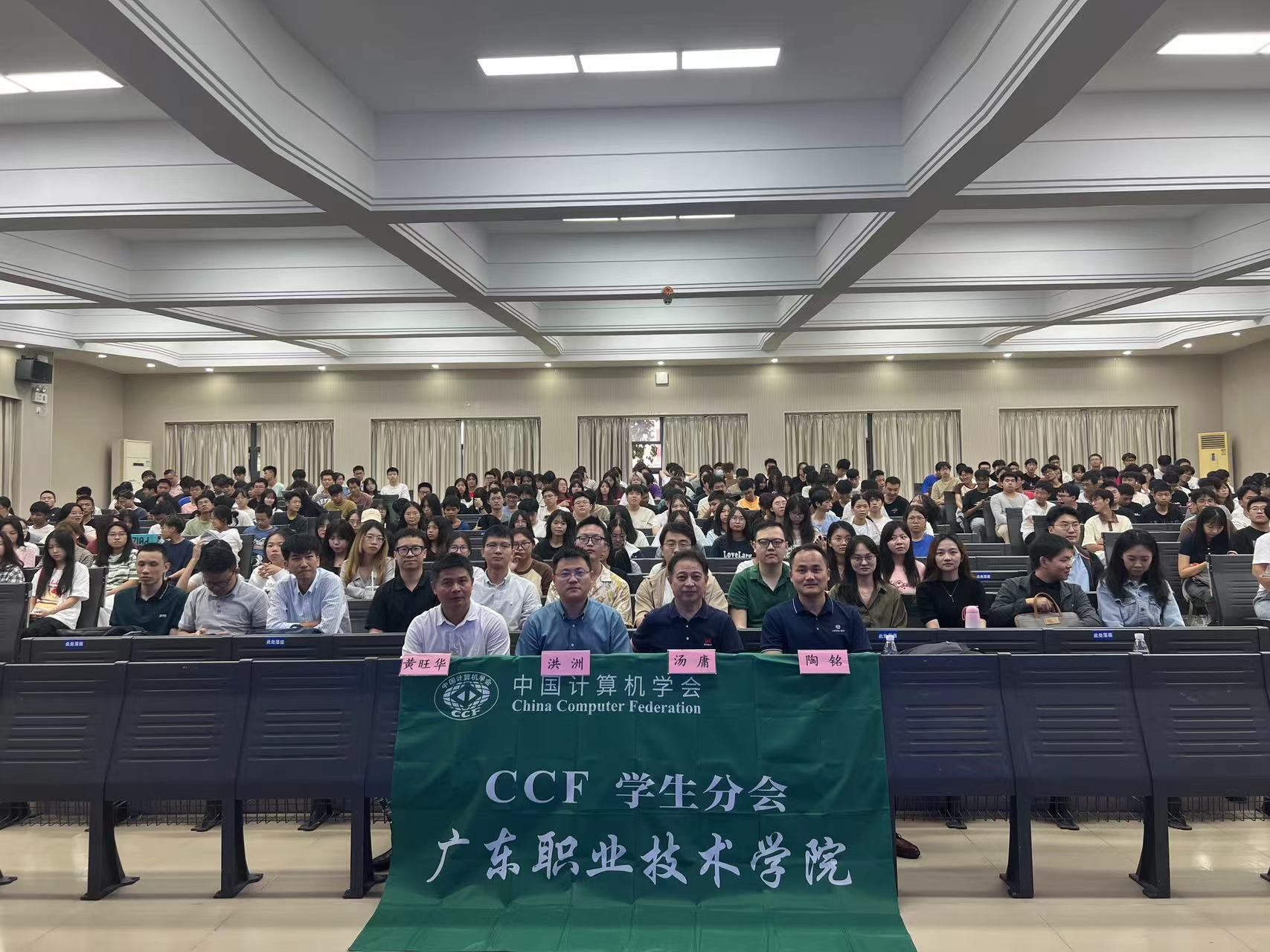 2023年10月18日,CCF@U第990場(chǎng):湯庸、陶銘走進(jìn)廣東職業(yè)技術(shù)學(xué)院。吳教育校長(zhǎng)、洪洲院長(zhǎng)、黃旺華副院長(zhǎng)和數(shù)百位老師和同學(xué)們參加了活動(dòng)。