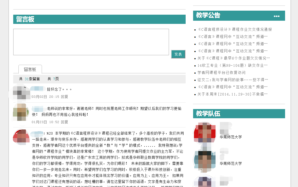 在首頁提供互動交流功能,方便站內(nèi)的課程和非課程成員交流。在這里可以暢所欲言,發(fā)表評論和意見等。教師用戶可自行選擇是否開放該功能。
