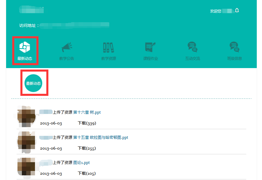 點(diǎn)擊“最新動態(tài)”可以查看教師發(fā)布的最新公告,同班同學(xué)提出的問題以及老師布置的作業(yè),通過點(diǎn)擊相應(yīng)標(biāo)題可以查看具體內(nèi)容。如圖2.1所示: