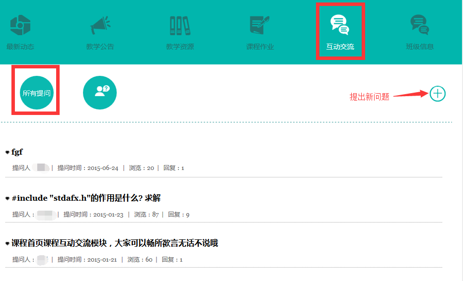 點(diǎn)擊“互動交流”進(jìn)入互動交流,在這里,你可以大膽提出你的問題,也可以對其他同學(xué)提出的問題提出自己的看法。