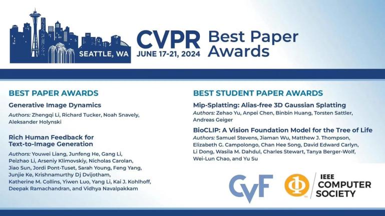 6月20日凌晨,在西雅圖舉辦的國際計算機視覺頂會 CVPR 2024 正式公布了最佳論文等獎項,團隊原成員梁有為同學的第一作者論文摘得此次大會最佳論文獎(Best Paper Award)。