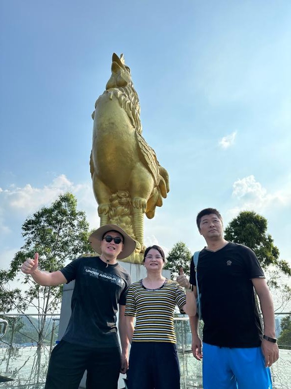 穿過玻璃棧道,我們沿著蜿蜒的山路拾級(jí)而上,終于來到了山的最頂端——金雞巖。于是這張極具紀(jì)念意義的名照橫空出世,象征著吳凱老師、吳逢春老師、黃園園老師頂峰相見,即將再創(chuàng)輝煌!