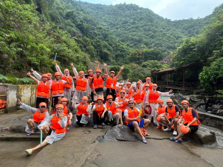 這次清遠(yuǎn)之行讓我們收獲頗豐。在金雞巖中我們體驗(yàn)了腳踏實(shí)地登高樓;在黃騰峽漂流中我們勇敢挑戰(zhàn)激流;在不斷前進(jìn)的路上,我們“勞逸結(jié)合”,品嘗了甘甜鮮嫩的清遠(yuǎn)雞。更重要的是這次旅行使我們聯(lián)結(jié)在一起,成為一個(gè)相親相愛的大團(tuán)隊(duì),一切攜手并進(jìn),共同創(chuàng)造更美好的未來!