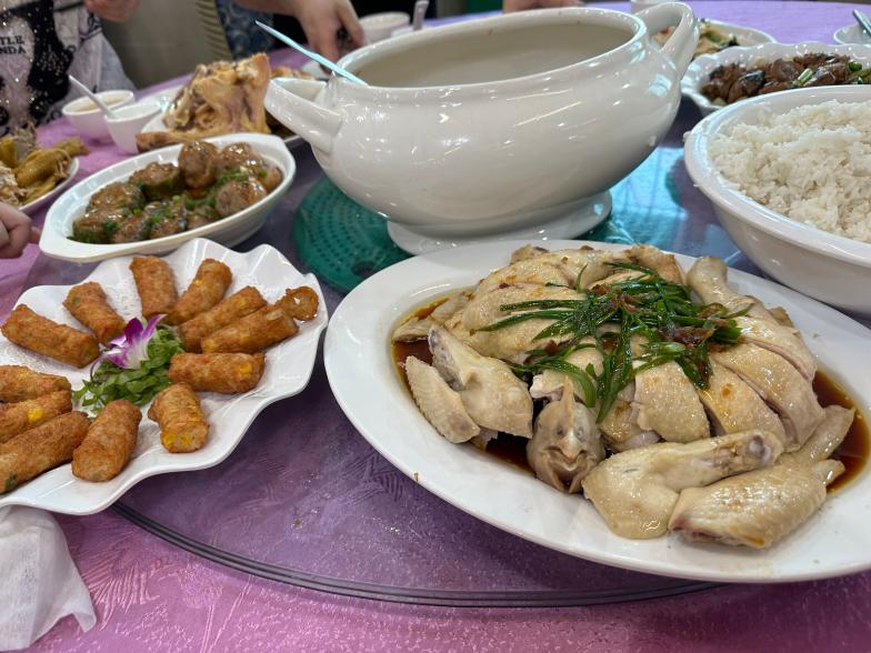 漂流結(jié)束后,我們帶著滿身的疲憊和興奮,以及饑腸轆轆的肚子,來到了餐廳,準(zhǔn)備品嘗當(dāng)?shù)靥厣?/span>——清遠(yuǎn)雞。不一會(huì)兒,一盤盤色香味俱佳的清遠(yuǎn)雞被端上了桌。我們迫不及待地品嘗起來,雞肉鮮嫩多汁,口感爽滑,令人回味無窮。