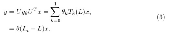 一般GCN。GCN通過簡化Chebynet,使用一階Chebyshev多項式近似進行圖 卷積,即設k = 1, θ= θ0=−θ1,卷積定義如下: