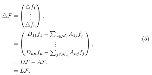 從兩個性質點可以看出,拉普拉斯矩陣揭示了圖結構上局部節(jié)點之間 的關聯(lián)和全局節(jié)點之間的關聯(lián)。在拉普拉斯矩陣的計算中,圖中的每個節(jié)點i與其相鄰節(jié)點的特征進行直接聚合。因此,拉普拉斯矩陣可以概念化為作用于空間域內(nèi)圖的一個聚集算子,它只是一個簡單的直接聚集。
